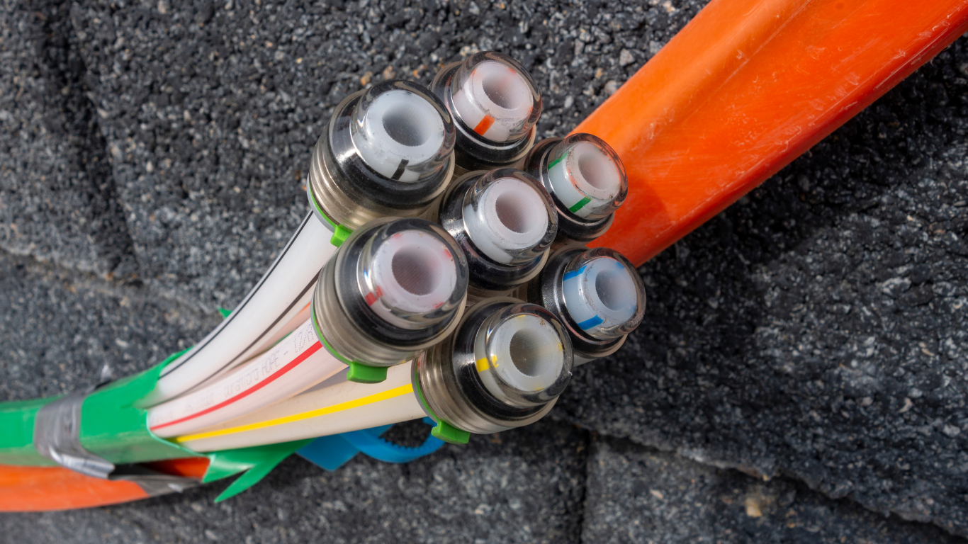 Kabeleinzug mit Druckluft: Präzises Einblasen von Glasfaserkabeln in bestehende oder neue Rohrsysteme.